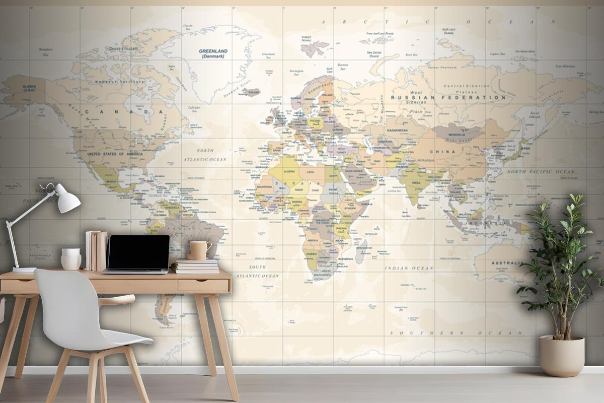 Siyasi Fiziksel Topografik Renkli Dünya Haritası Duvar Kağıdı