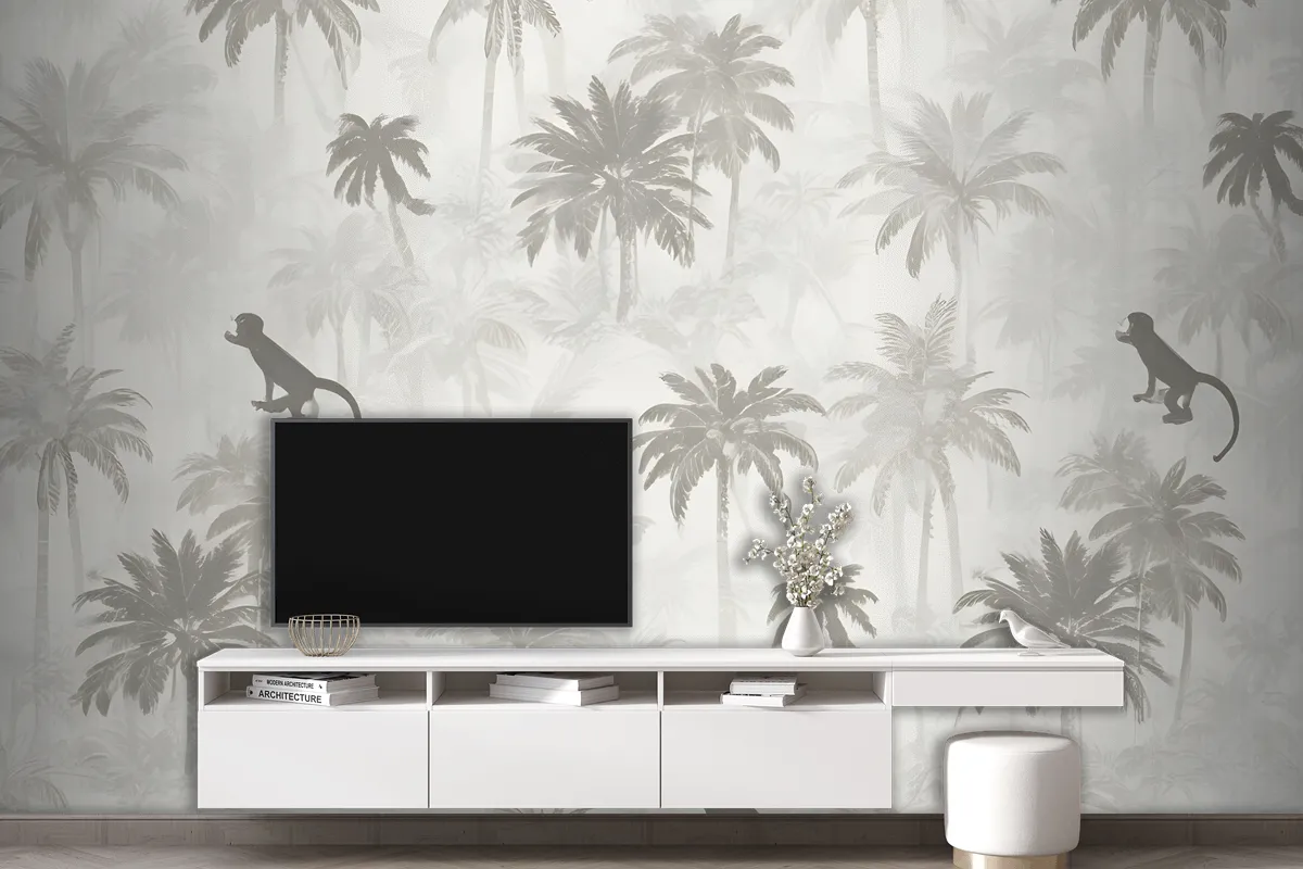 Sofistike Minimal Orman Hayvanları Desenli Oturma Odası Salon Duvar Kağıdı