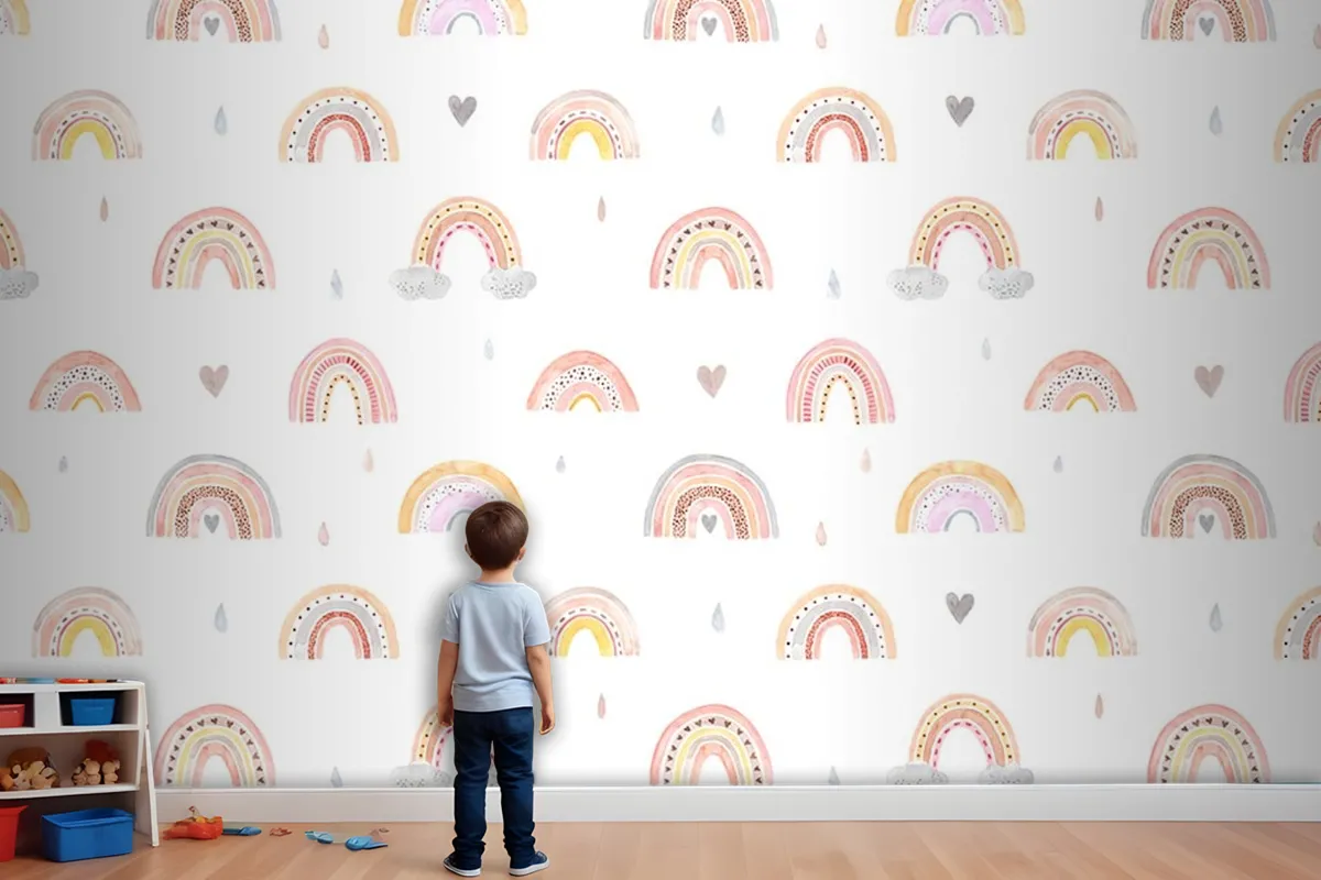 Soft Renk Gökkuşakları Çocuk Odası Duvar Kağıdı