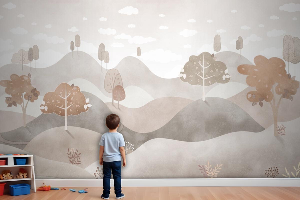 Sonbahar Tepeleri Monokrom Manzara Çocuk Odası Duvar Kağıdı