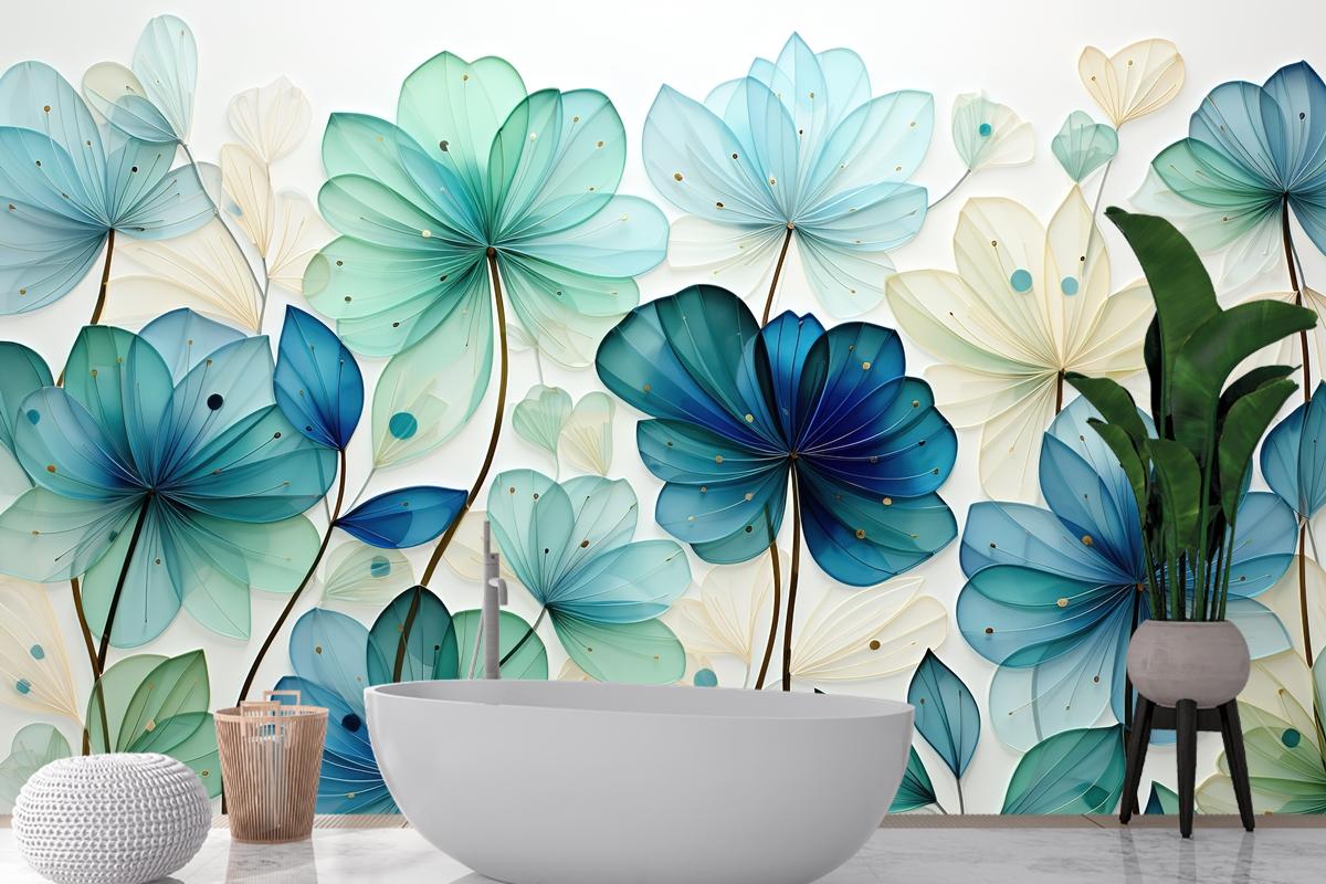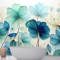Sorunsuz Çiçek Desenli Renkli Çiçek Deseni Suluboya Banyo Duvar Kağıdı