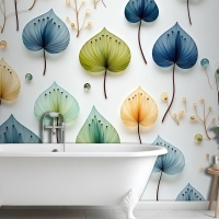 Sorunsuz Çiçek Desenli Renkli Çiçek Desenli Banyo Duvar Kağıdı