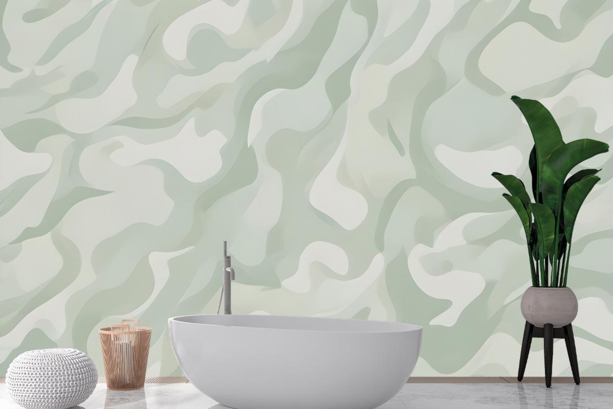Soyut Modern Botanik Şekiller Yeşil Banyo Duvar Kağıdı