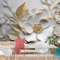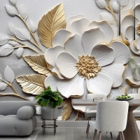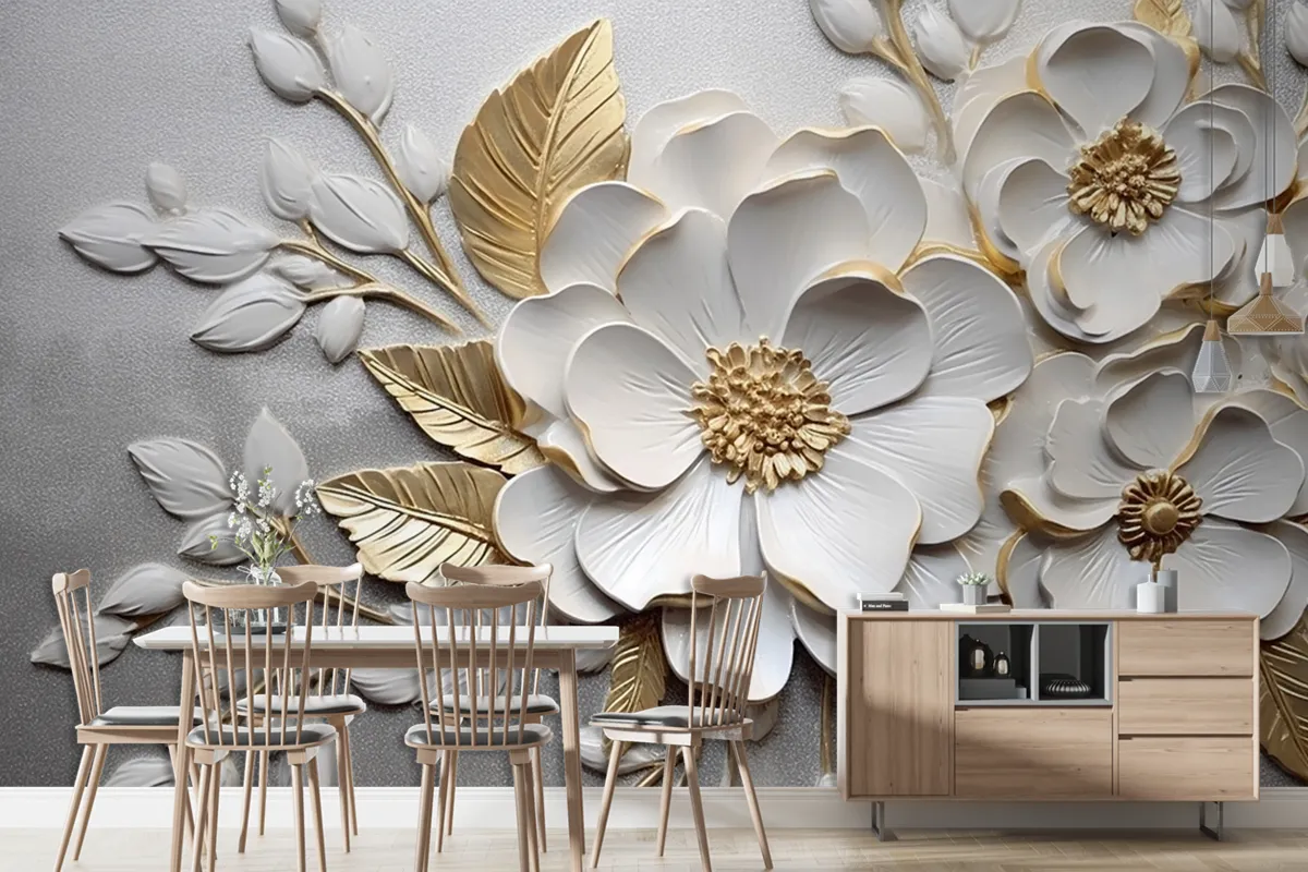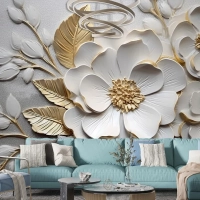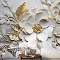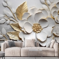 Soyut Sanatsal Çiçekler Dallar Altın Ve Kanvas Tablo Duvar Kağıdı