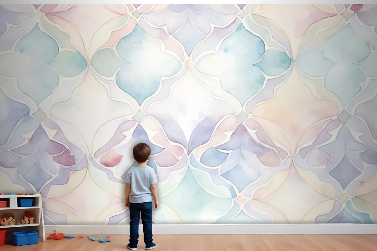 Soyut Suluboya Desenli Çocuk Odası Duvar Kağıdı