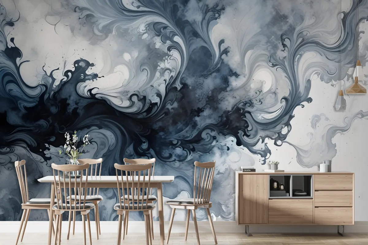 Soyut Suluboya Stili Koyu Mermer Duvar Kağıdı