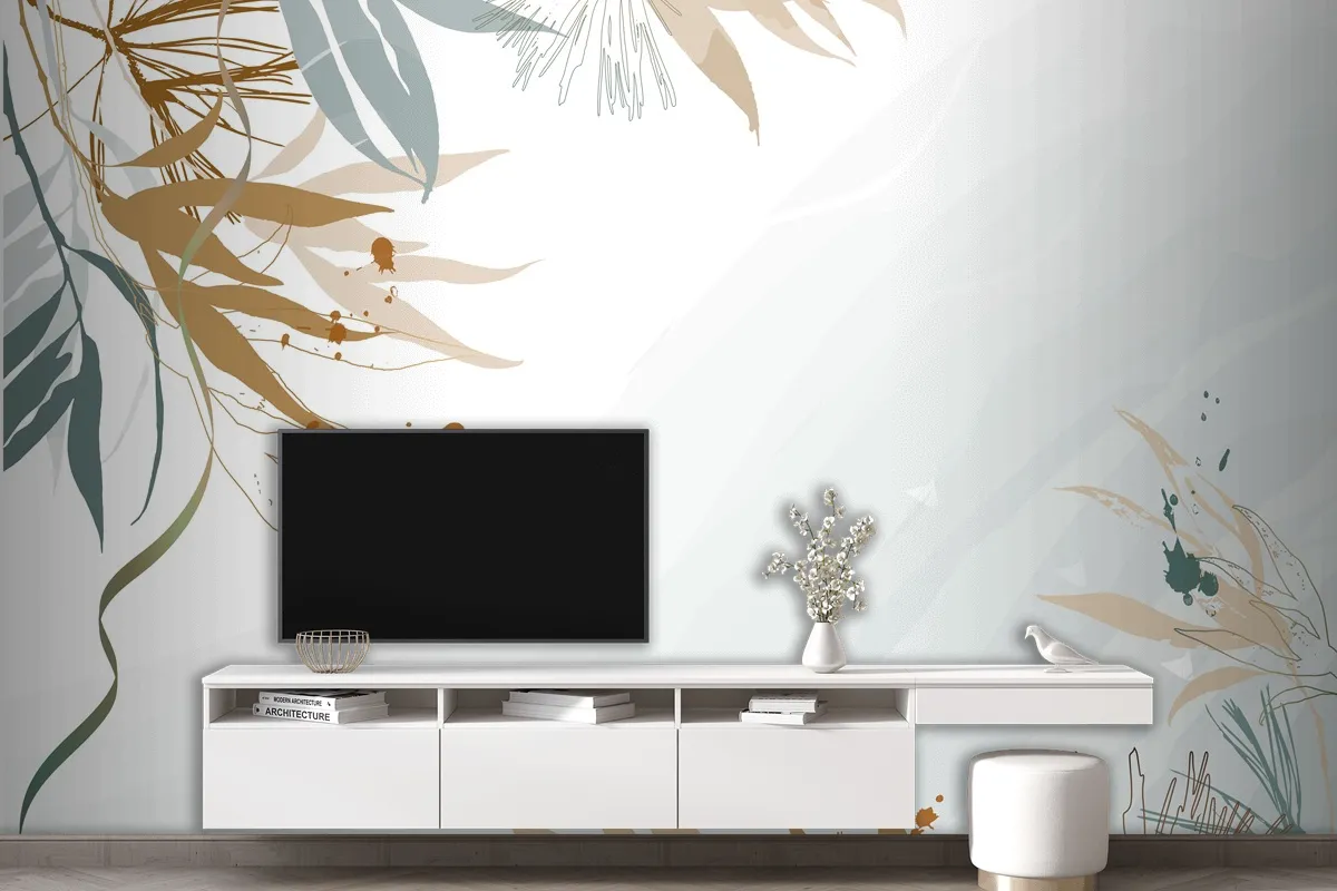 Soyut Suluboya Yaprakları Çizimi Tv Arkası Duvar Kağıdı