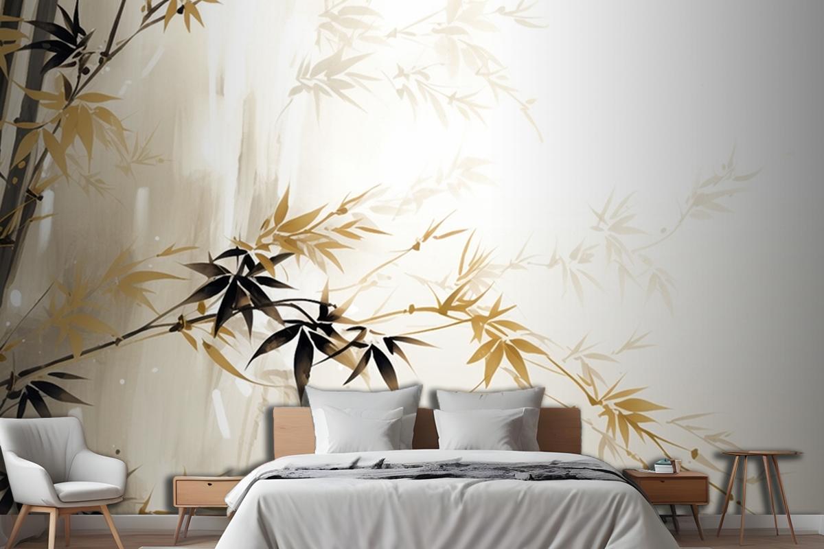 Soyut Yağlıboya Resim Tekniği Çiçekler Yapraklar Yatak Odası Duvar Kağıdı