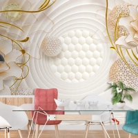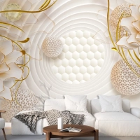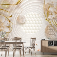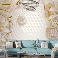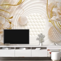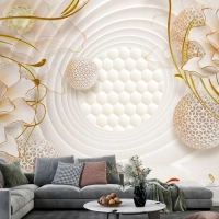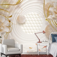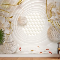 Suda Balık Çiçekli Arka Planlı 3D Duvar Kağıdı