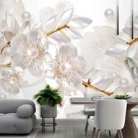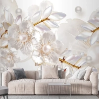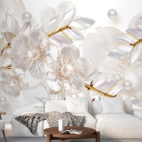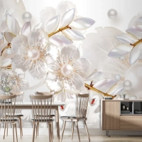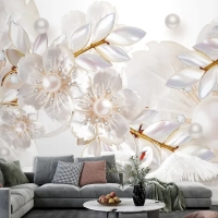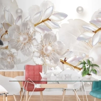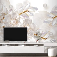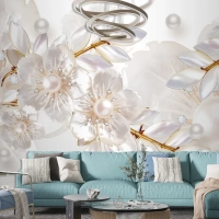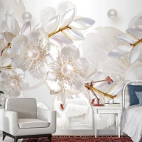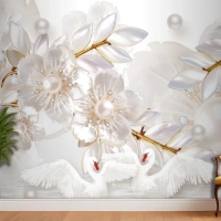 Suda Kuğu Ve Çiçekli Arka Planlı 3D Duvar Kağıdı