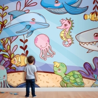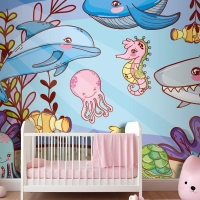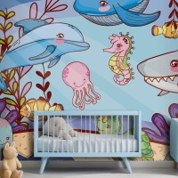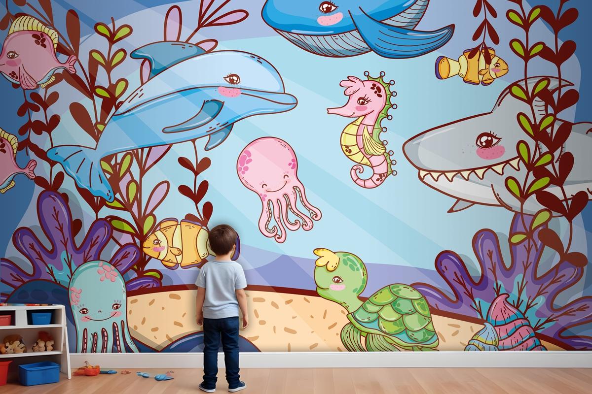 Sudaki Deniz Yaşamı Çocuk Odası Duvar Kağıdı