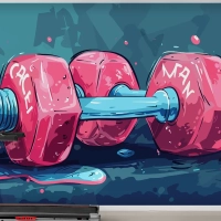 Sulu Boya Tarzı Pembe Dambıl Fitness Duvar Kağıdı