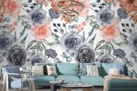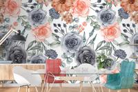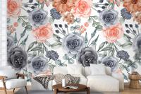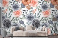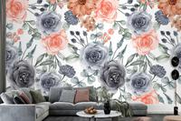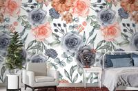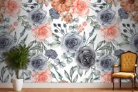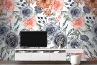 Suluboya Arka Plan Dikişsiz Desen Çiçek Lacivert Ve Şeftali Duvar Kağıdı