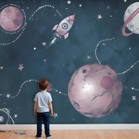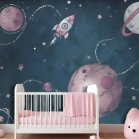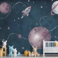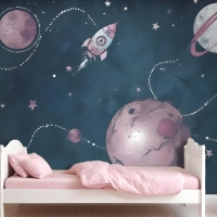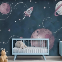 Suluboya Ayı Astronot Çocuk Odası Duvar Kağıdı Ile Uzay Parlayan Çocuklar
