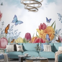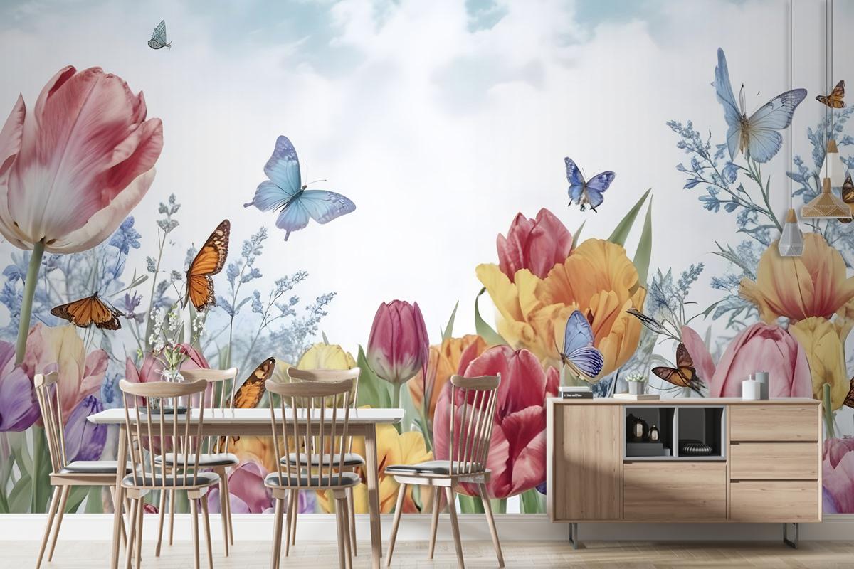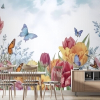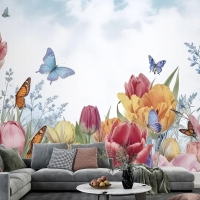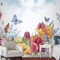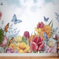 Suluboya Bahçe Çiçek Duvar Kağıdı