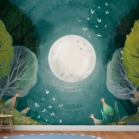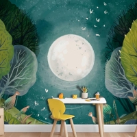 Suluboya Büyülü Orman Çocuk Odası Duvar Kağıdı