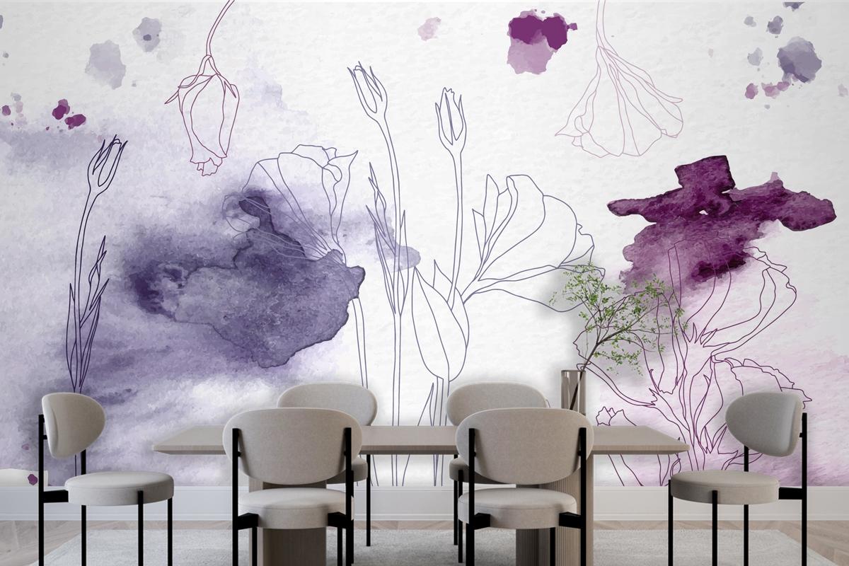 Suluboya Çiçek Arka Plan Yemek Odası Duvar Kağıdı