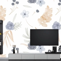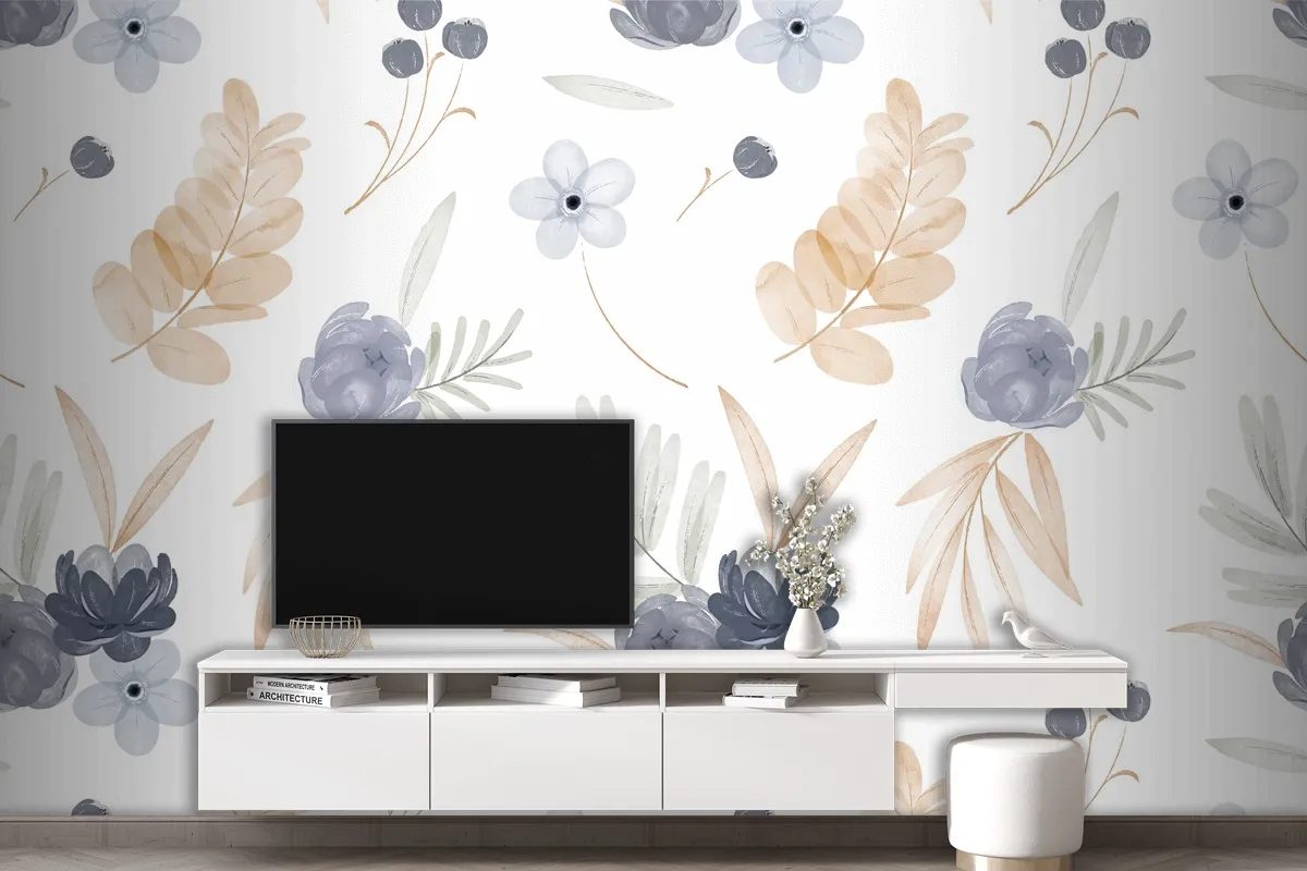 Suluboya Çiçek Deseni Tv Arkası Duvar Kağıdı