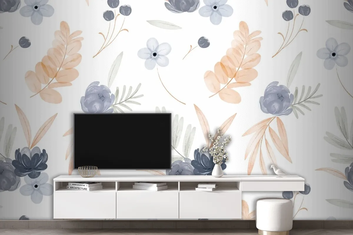 Suluboya Çiçek Desenli Oturma Odası Duvar Kağıdı