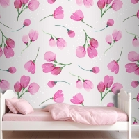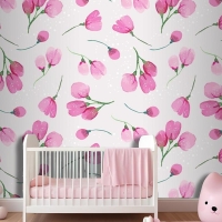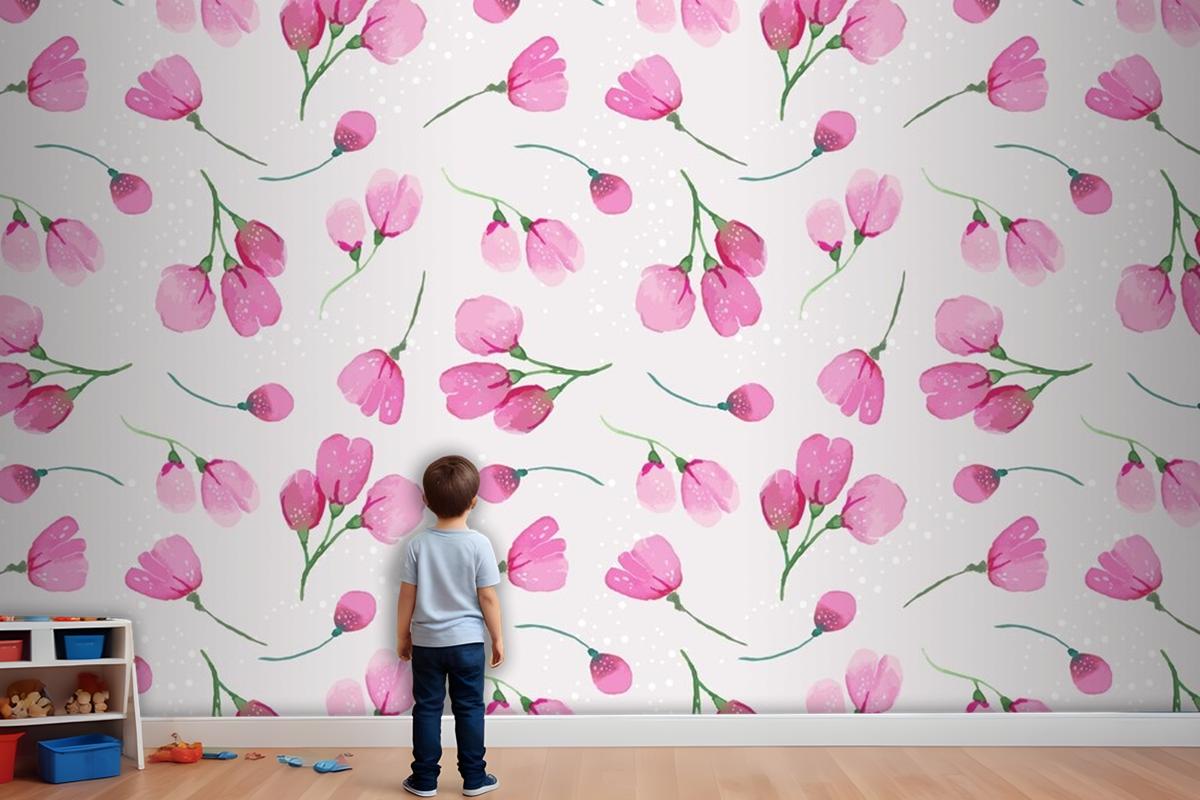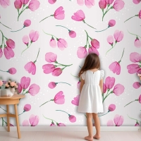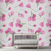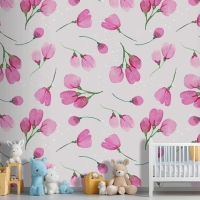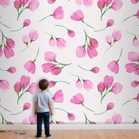 Suluboya Çiçek Desenli Tasarım Çocuk Odası Duvar Kağıdı
