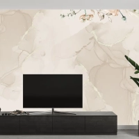 Suluboya Çiçek Ve Yaprak Tv Arkası Duvar Kağıdı