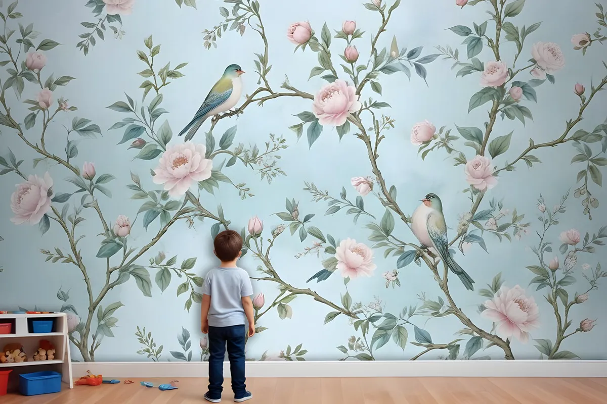 Suluboya Çin Sanatı Çiçek Şakayık Çiçeği Çocuk Odası Duvar Kağıdı