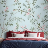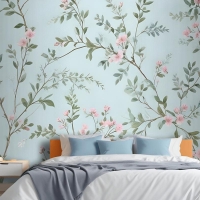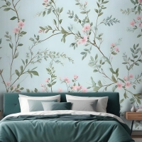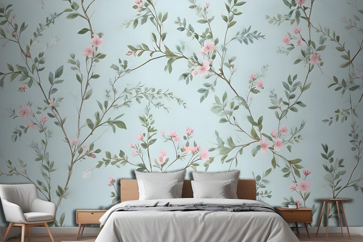 Suluboya Çin Sanatı Çiçek Şakayık Çiçeği Yatak Odası Duvar Kağıdı