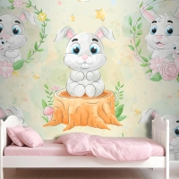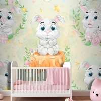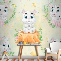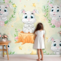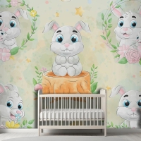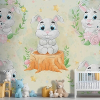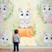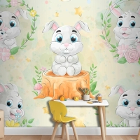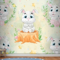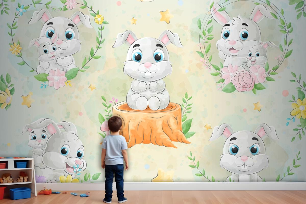 Suluboya Çocuk Odası Duvar Kağıdı Ile Sevimli Küçük Tavşan