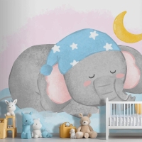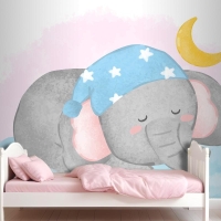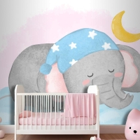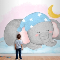 Suluboya Çocuk Odası Duvar Kağıdı Nde Bulutun Üzerinde Uyuyan Güzel Fil