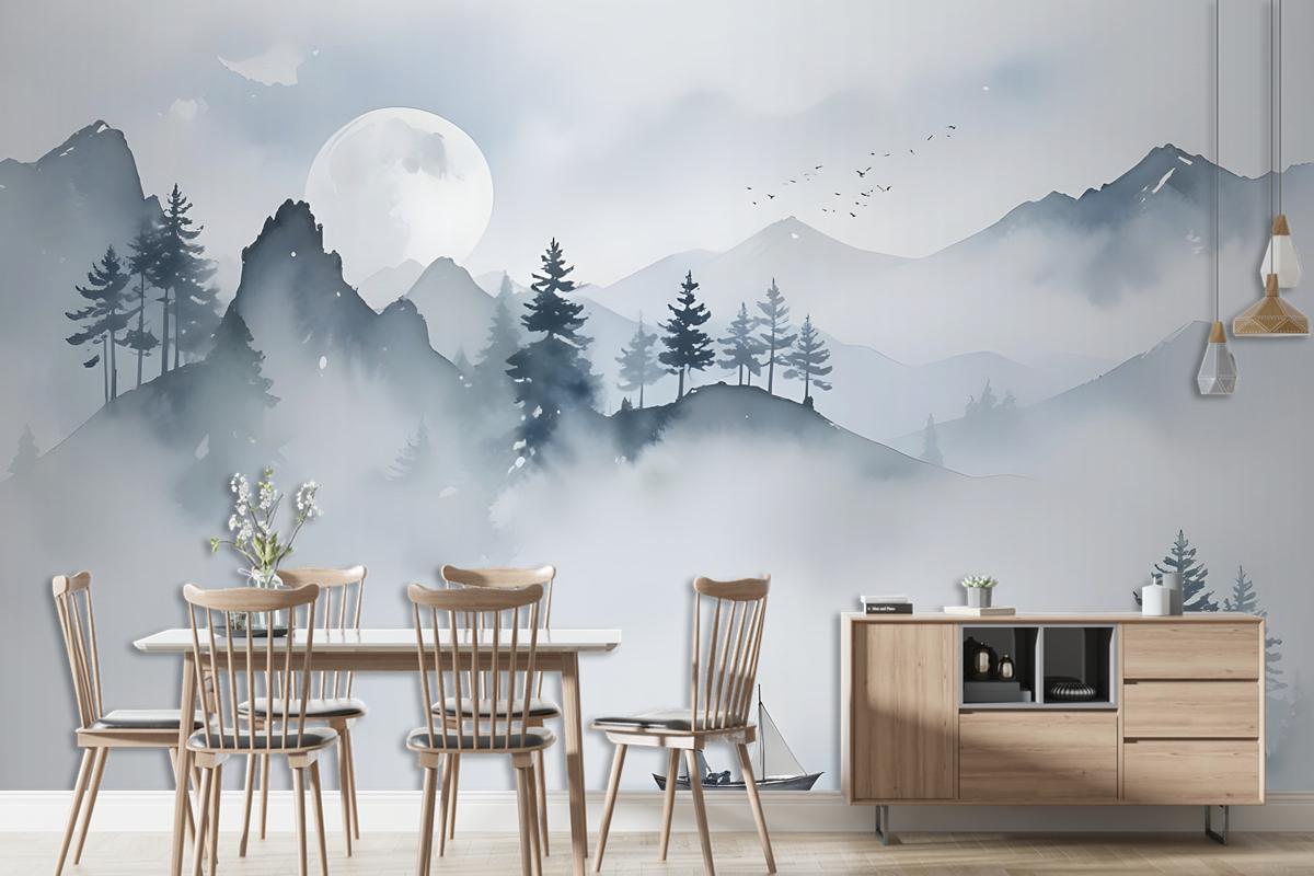 Suluboya Dağ Manzarası Duvar Kağıdı