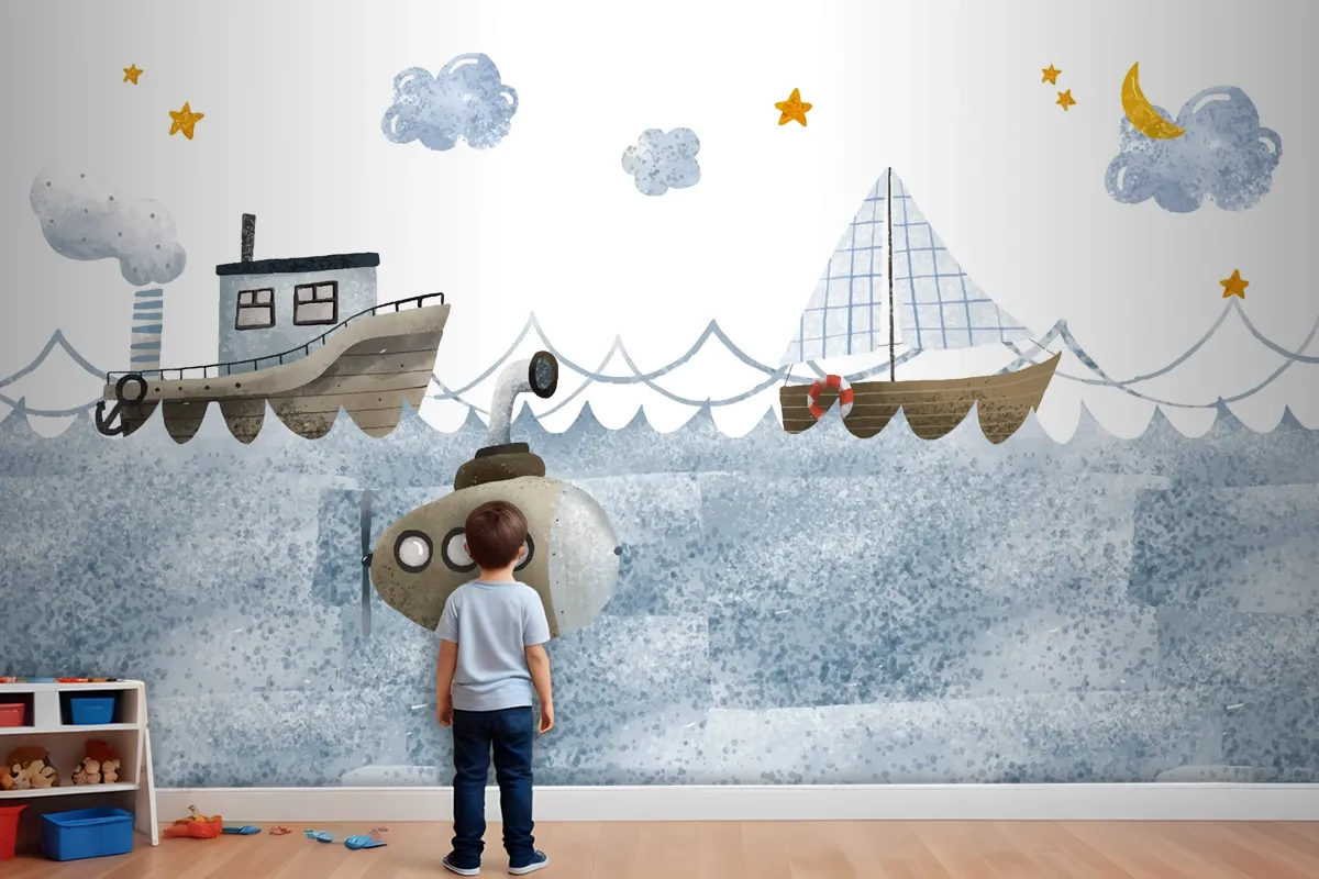 Suluboya Deniz Manzarası Çocuk Odası Duvar Kağıdı