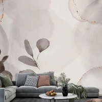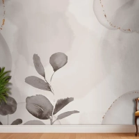 Suluboya Elle Çizilmiş Arka Plan Yaprakları Oturma Odası Duvar Kağıdı