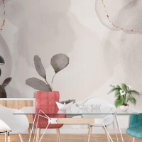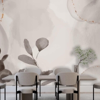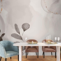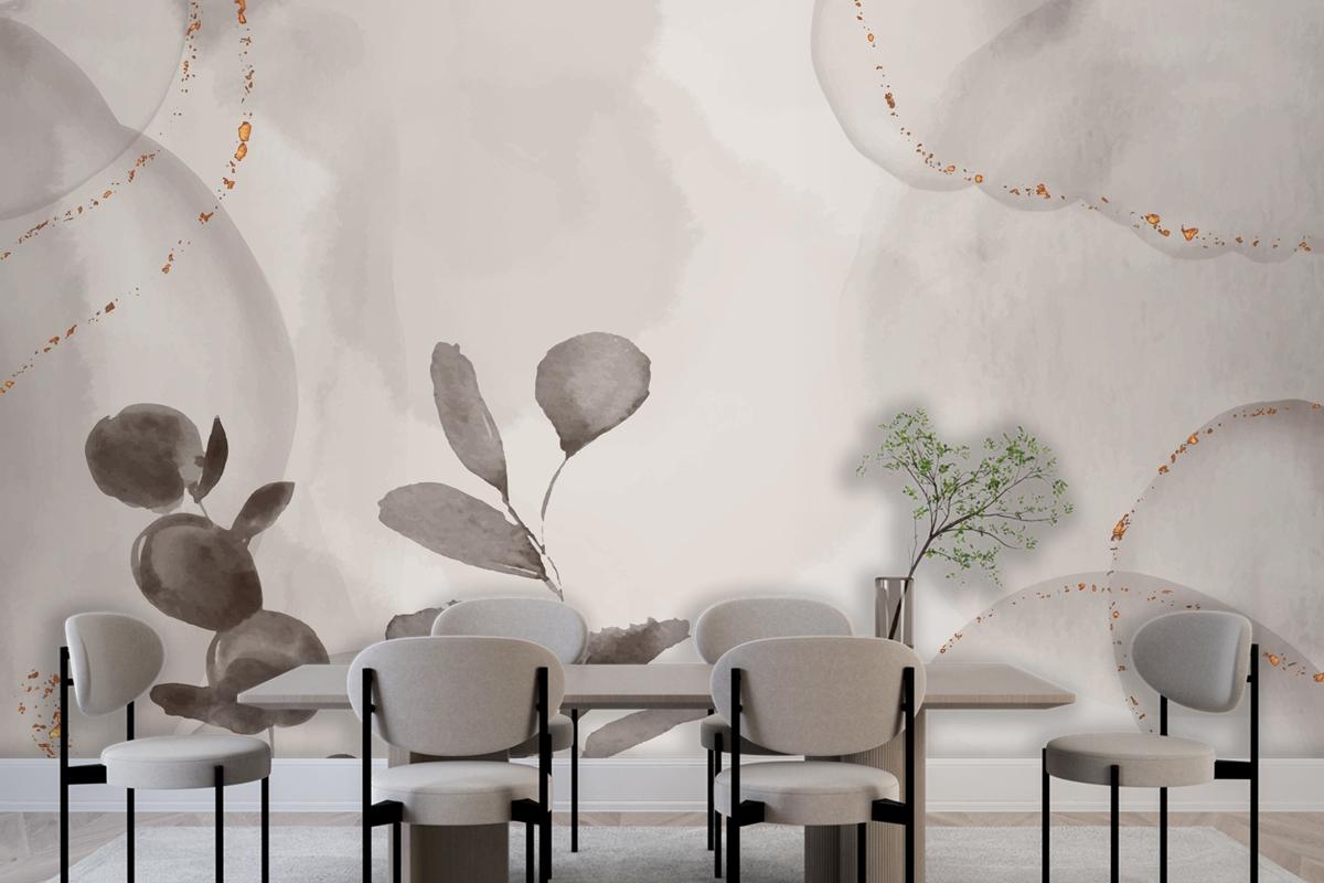 Suluboya Elle Çizilmiş Arka Plan Yaprakları Yemek Odası Duvar Kağıdı