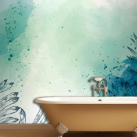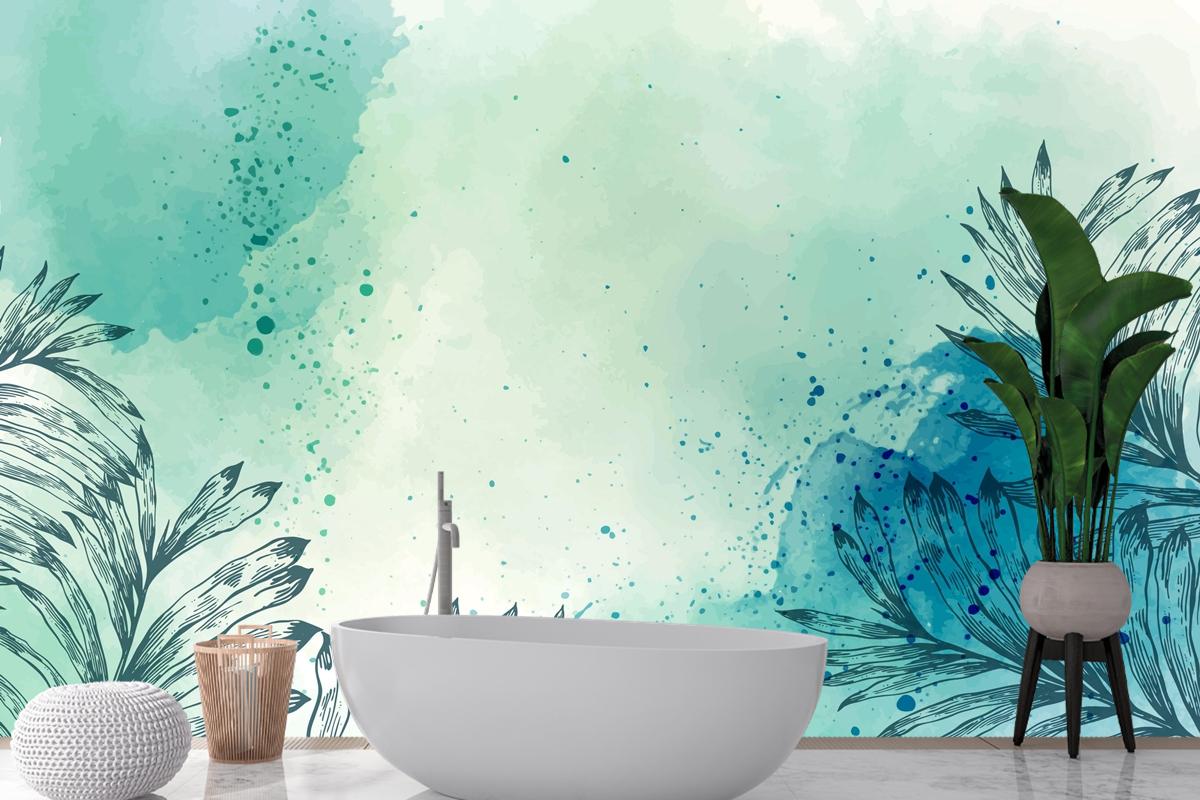Suluboya Elle Çizilmiş Banyo Duvar Kağıdı