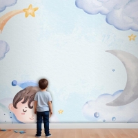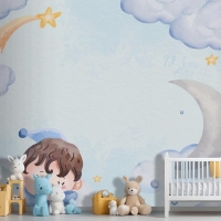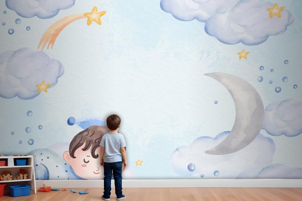 Suluboya Erkek Bebek Arka Plan Çocuk Odası Duvar Kağıdı
