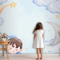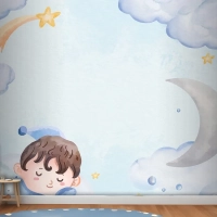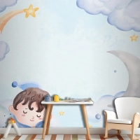 Suluboya Erkek Bebek Arka Plan Çocuk Odası Duvar Kağıdı