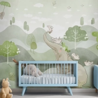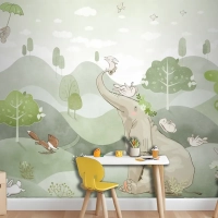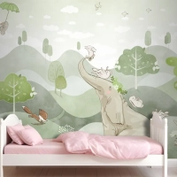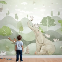 Suluboya Fil Tilki Geyik Bebek Odası Duvar Kağıdı