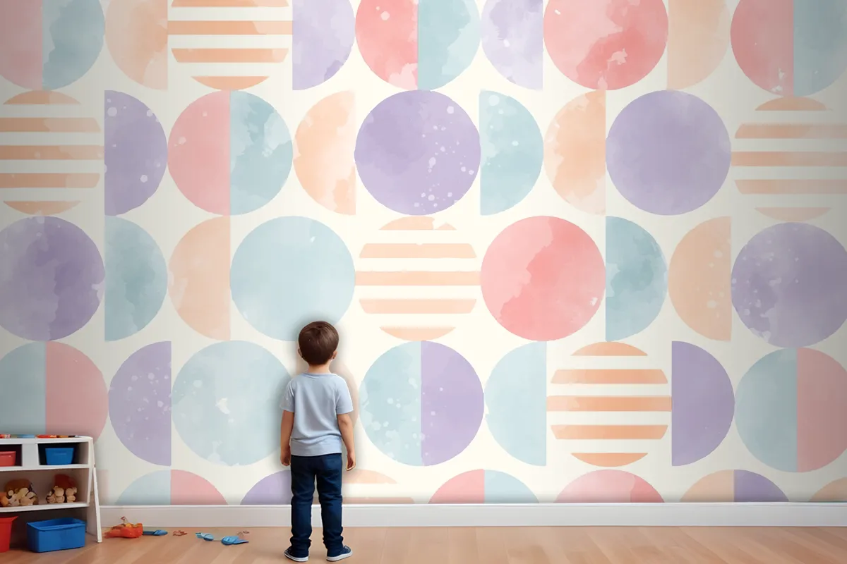 Suluboya Geometrik Arka Plan Çocuk Odası Duvar Kağıdı