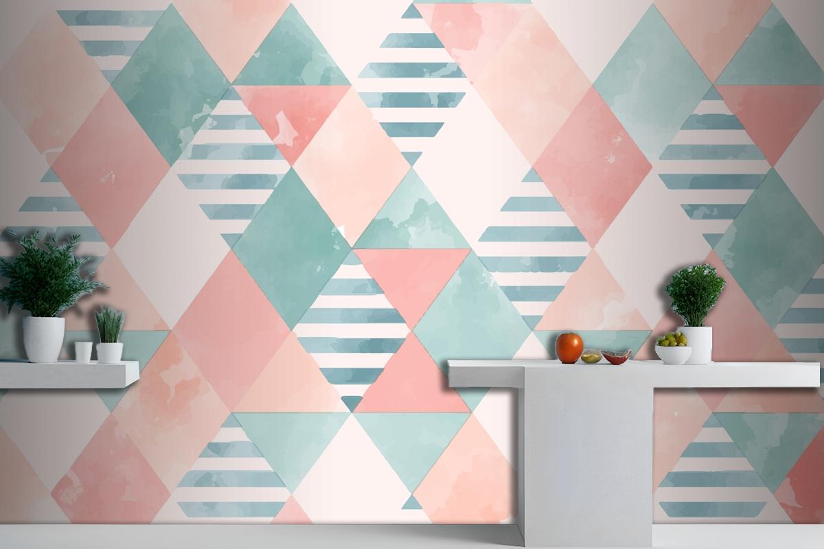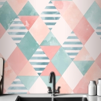 Suluboya Geometrik Arka Plan Mutfak Duvar Kağıdı