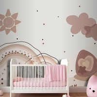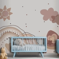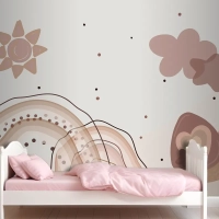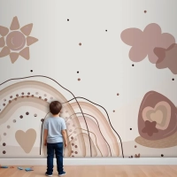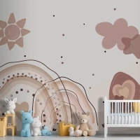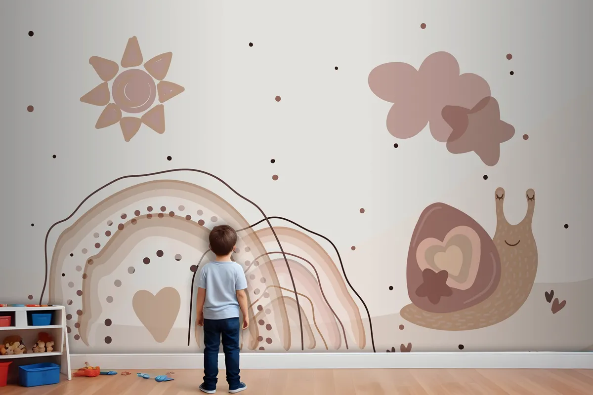 Suluboya Gökkuşağı Ve Salyangoz Bej Çocuk Odası Duvar Kağıdı
