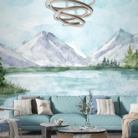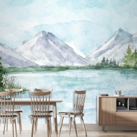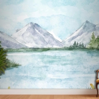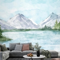 Suluboya Göl Manzarası Oturma Odası Duvar Kağıdı