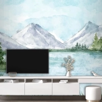 Suluboya Göl Manzarası Oturma Odası Duvar Kağıdı