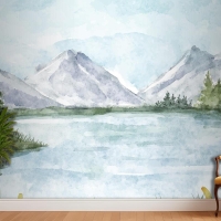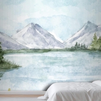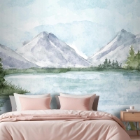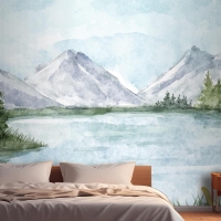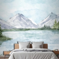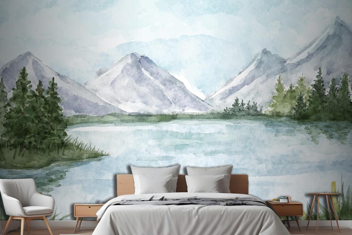 Suluboya Göl Manzarası Yatak Odası Duvar Kağıdı