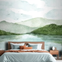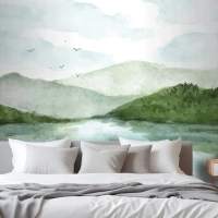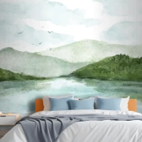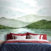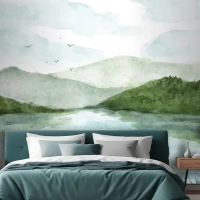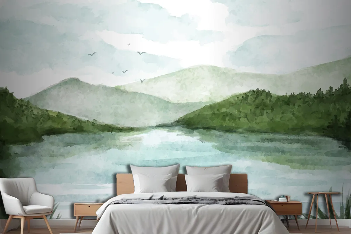 Suluboya Göl Manzarası Yatak Odası Duvar Kağıdı