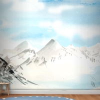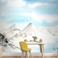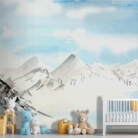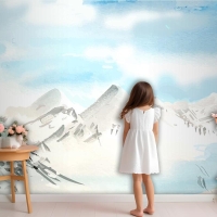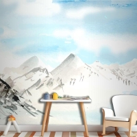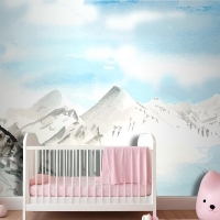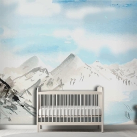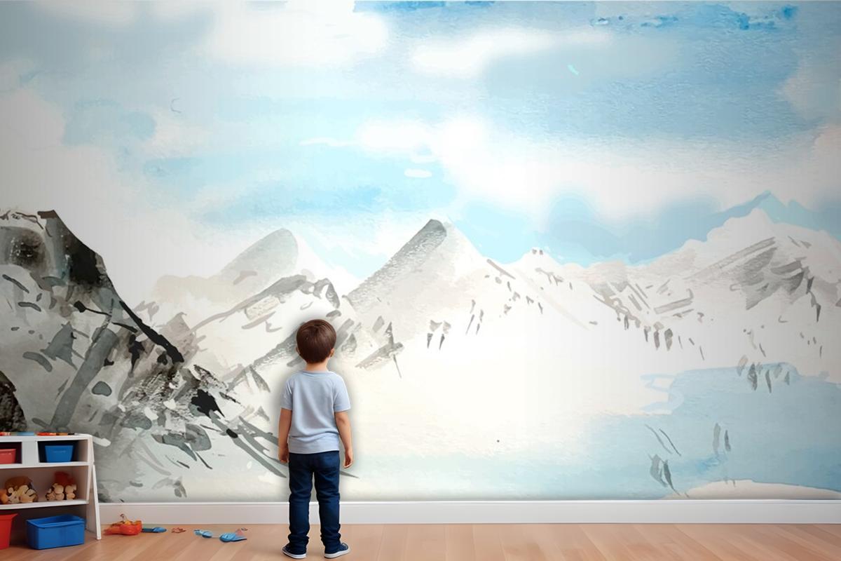 Suluboya Gündüz Dağları Arka Plan Çocuk Odası Duvar Kağıdı
