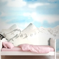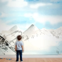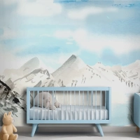 Suluboya Gündüz Dağları Arka Plan Çocuk Odası Duvar Kağıdı