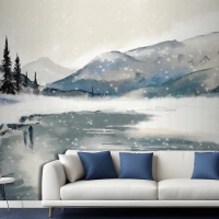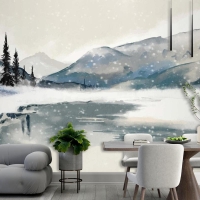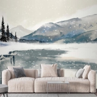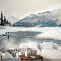 Suluboya Kış Manzarası Oturma Odası Duvar Kağıdı