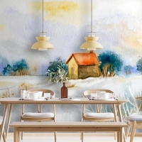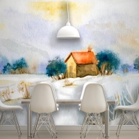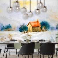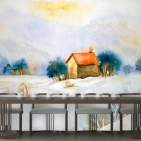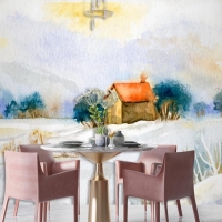 Suluboya Kış Manzarası Yemek Odası Duvar Kağıdı