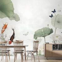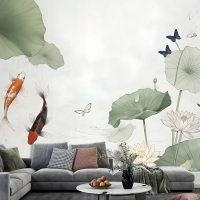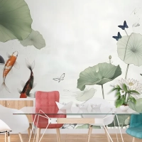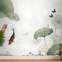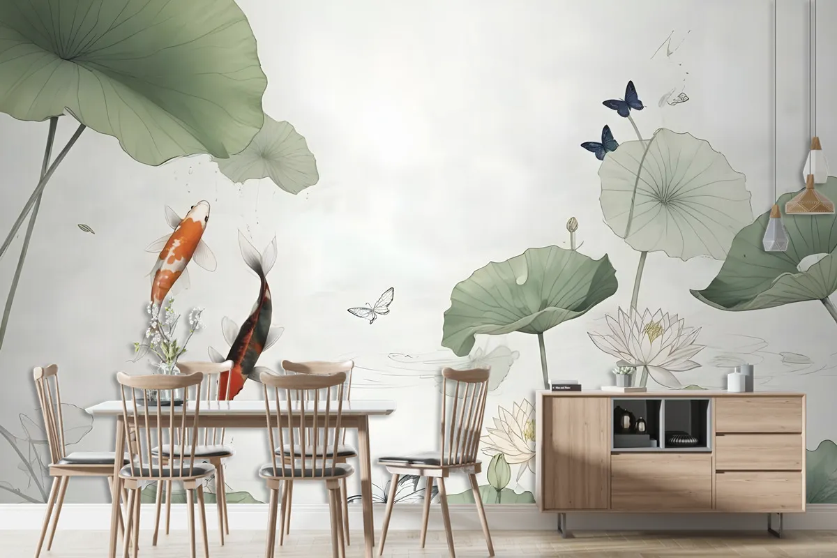 Suluboya Lotus Çiçeği Ve Kelebekler Duvar Kağıdı