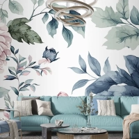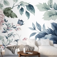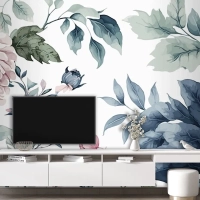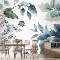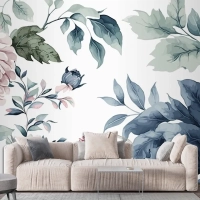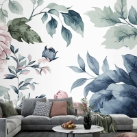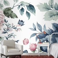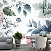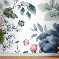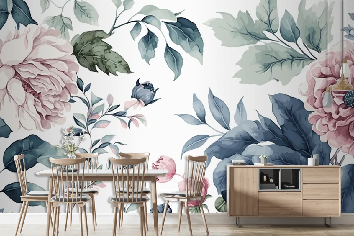 Suluboya Mavi Ve Pembe Çiçek Desenli Duvar Kağıdı